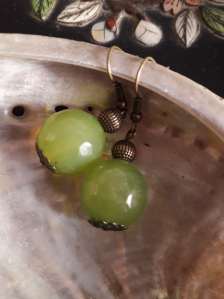 Jade green bead drop earrings (be024)