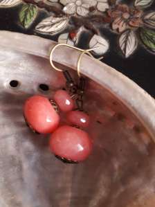 Dusty pink dyed Jade bead drop earring (be023)