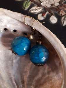 Large single drop faceted agate bead earrings (be022)