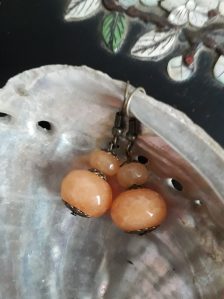 Oriental dyed jade tangerine double drop bead earrings (be030)