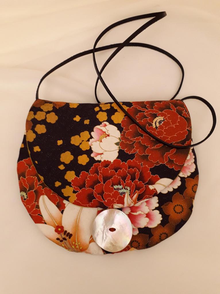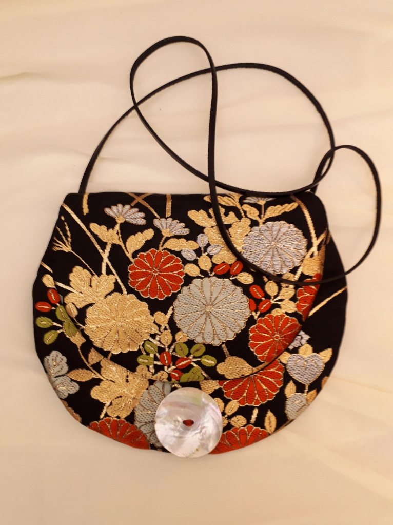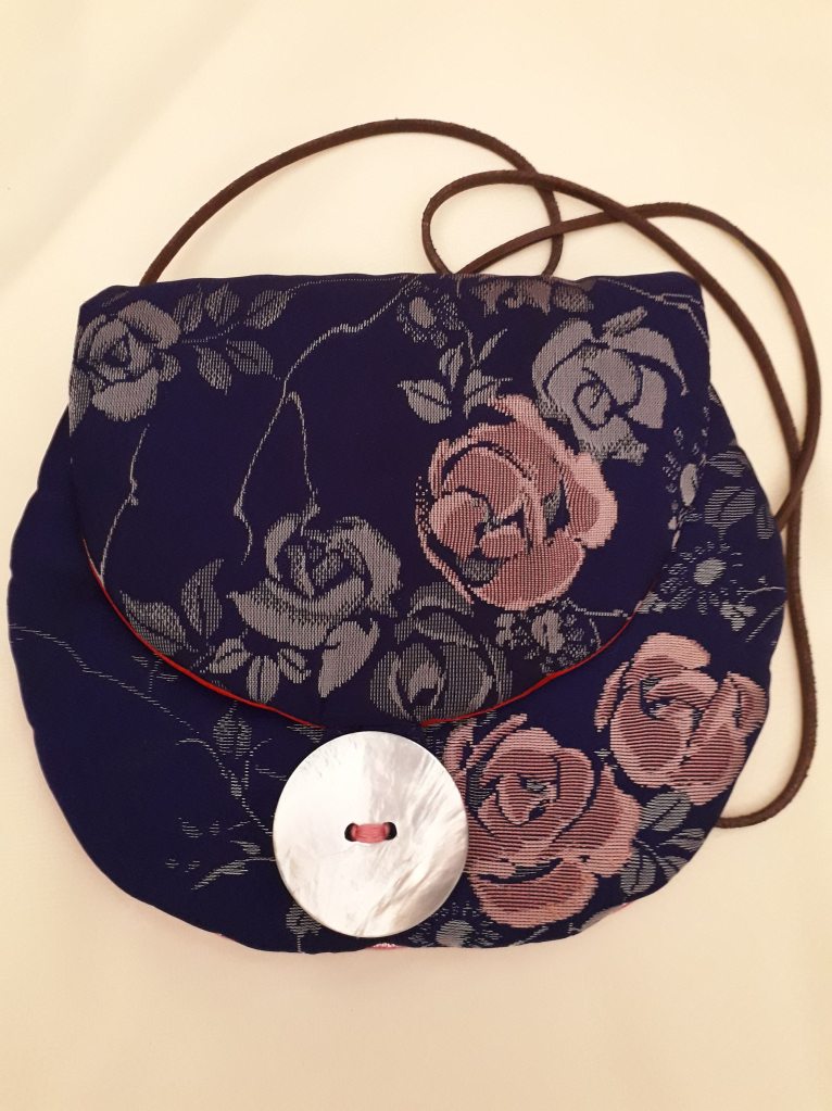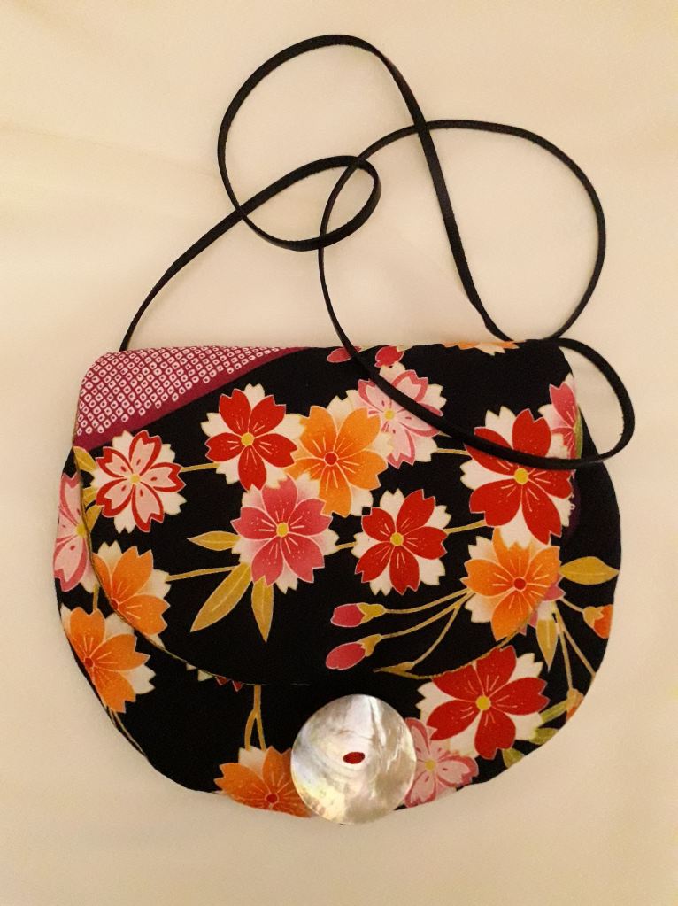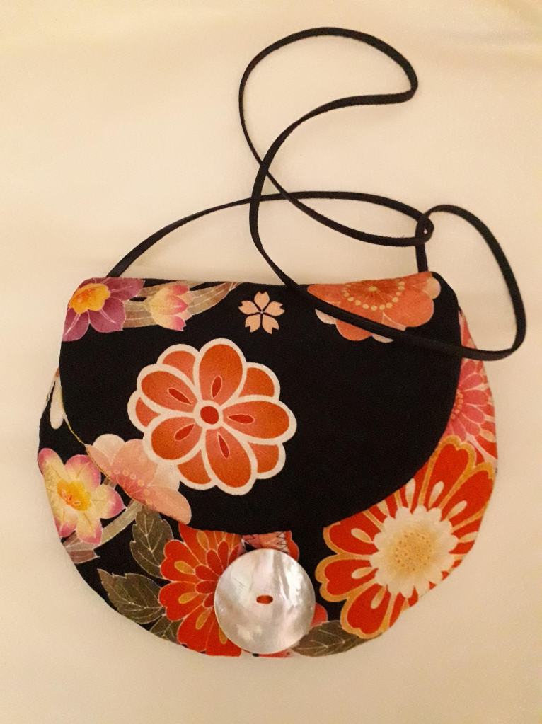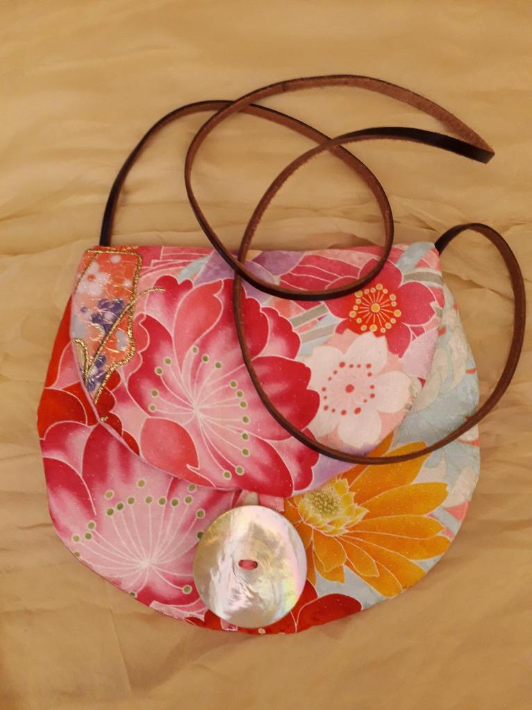 “I use stunning vintage Japanese kimono and obi belt fabrics to make these vibrant cross body bags. Every bit of precious fabric is used including in the lining and backing and each bag is finished with a vintage button”