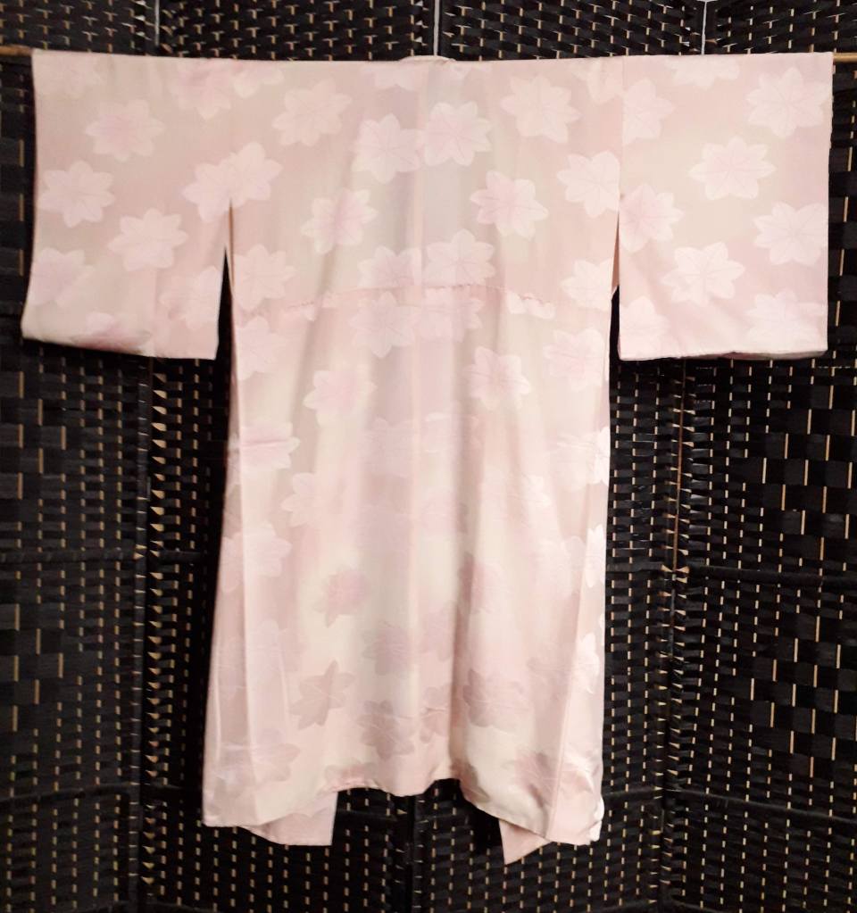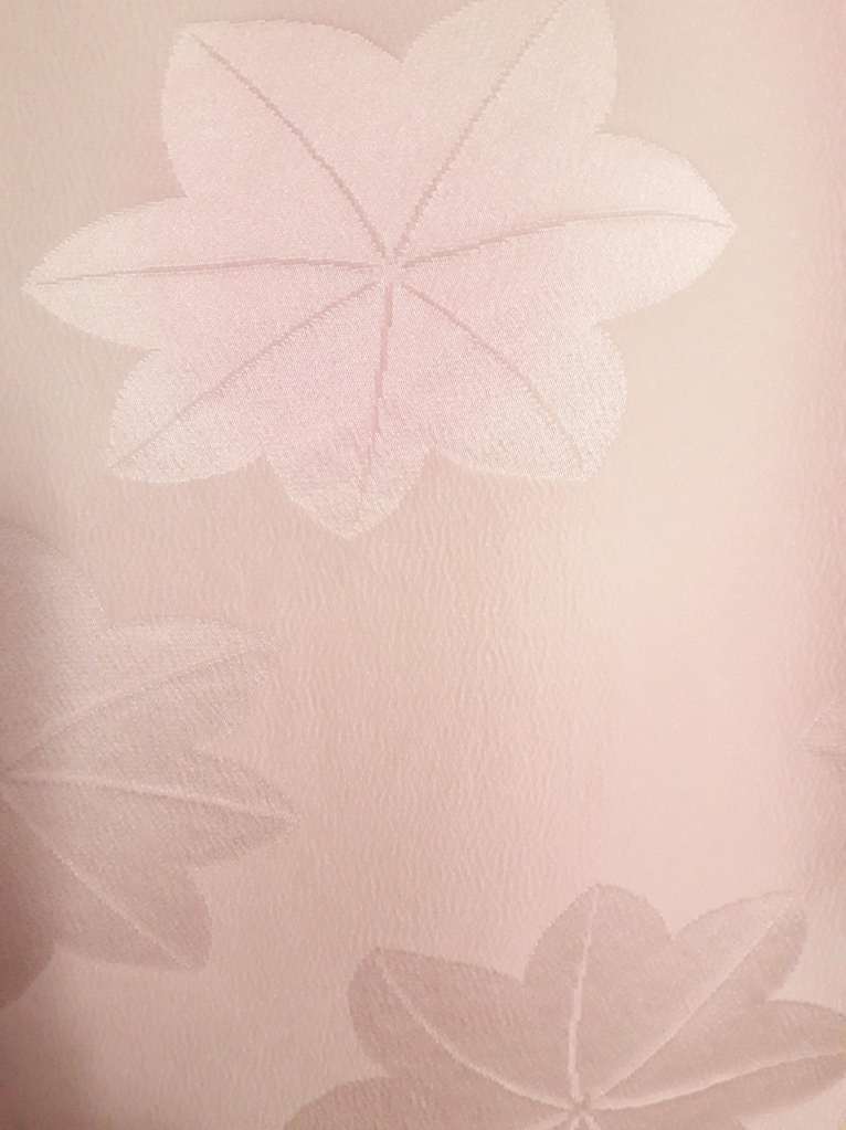 Stunning pale pink kimono with large woven maple leaves. Fully lined in excellent condition.Size M