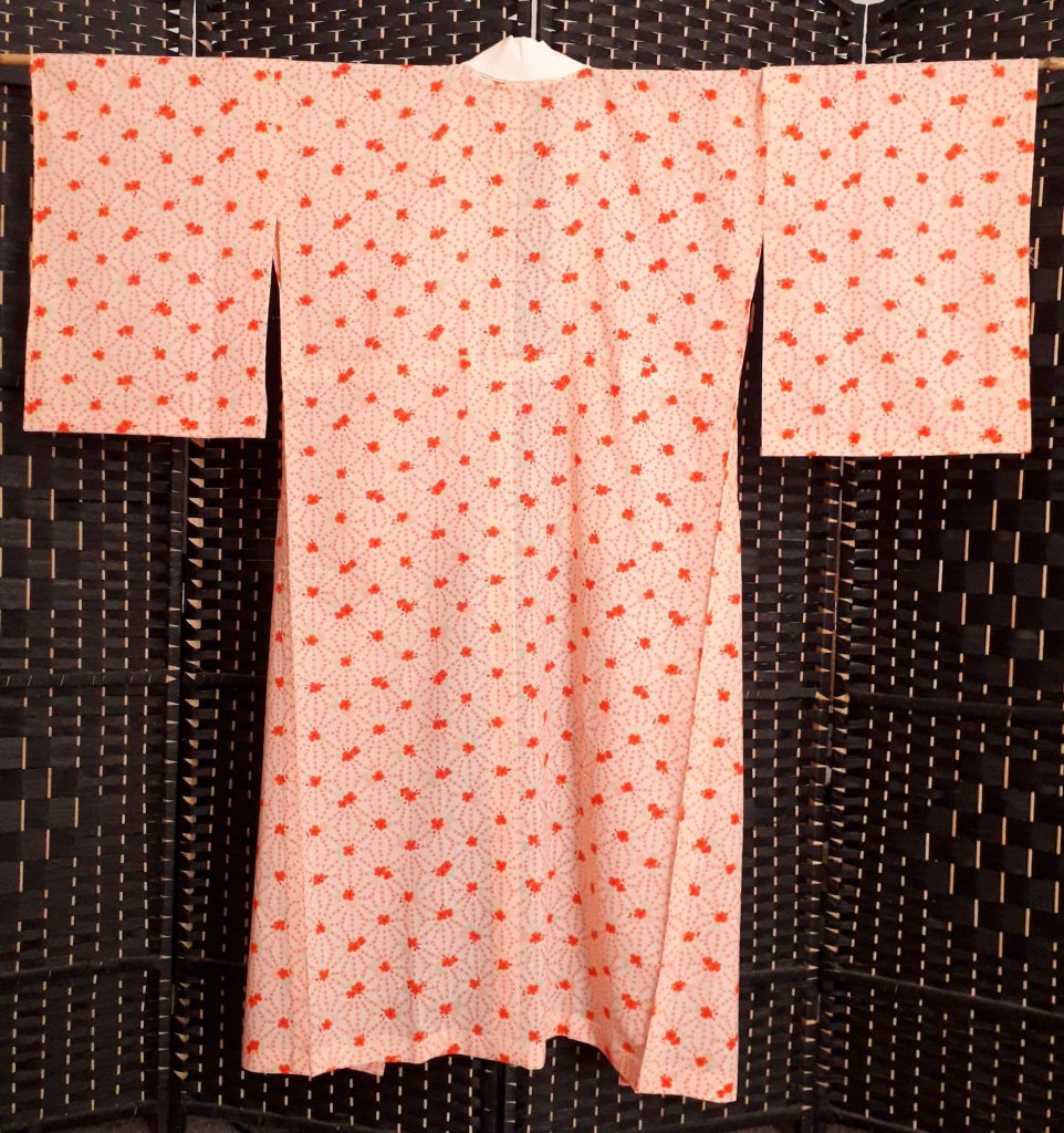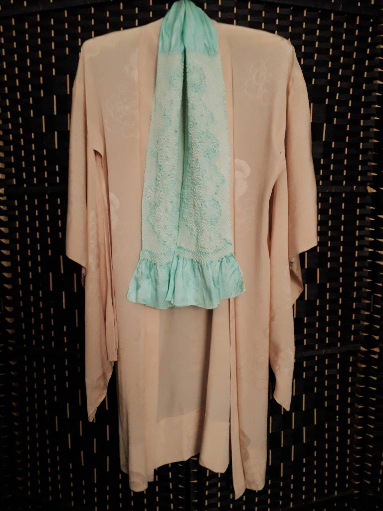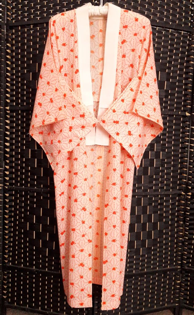1930’s Bright Orange and Pale Peach Crepe Kimono