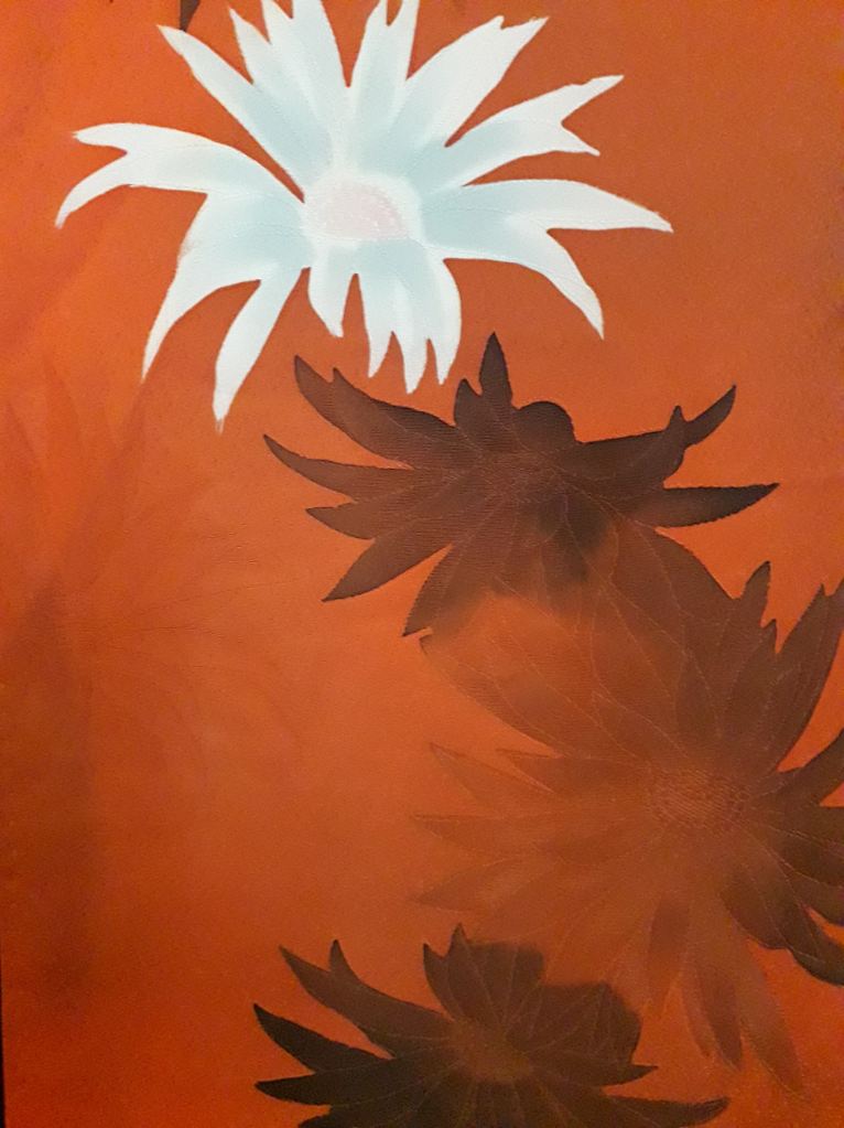Stunning vintage 1950s orange crepe kimono with floral jacquard weave design and gorgeous hand painted pale blue and brown wash flowers. Fully lined with cream silk and subtle orange ombre boarder to the hem and inner sleeves. Excellent condition Size S/M
